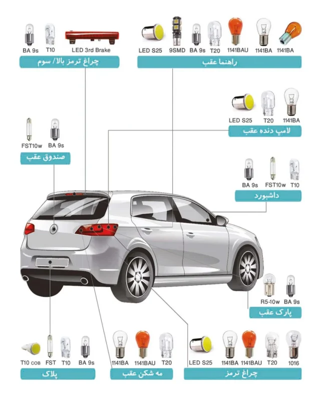 - به راهنمای خودرو یا لامپ فابریکی نگاه کنید.