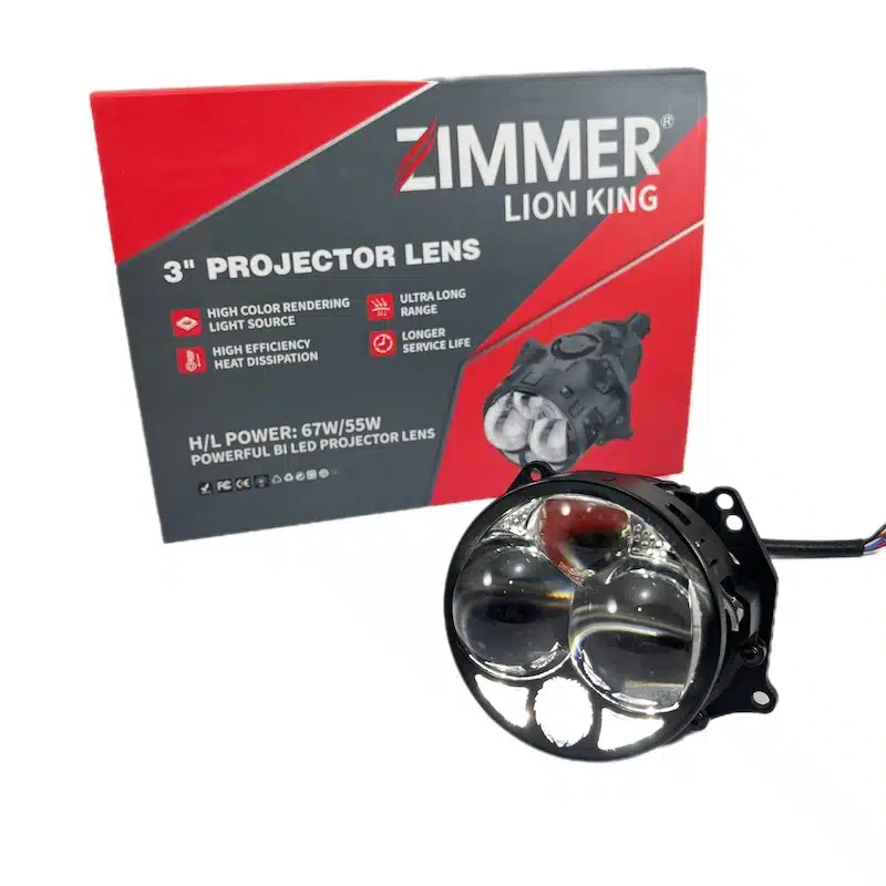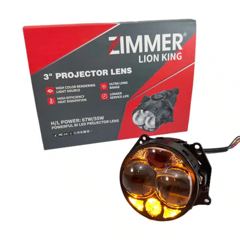 لنز جغدی ۳چشم LION KING لایون کینگ زیمر قوی ترین لنز موجود در بازار ایران می باشد که نور بسیار وسیع که با عدد لنز نور پایین تولید میشود و همچین ۲ نور بالا مجزا برای دید عمیق تر.نور بالا واید شهری که با پایین رفتن تیغه خط کات لنز ایجاد ویشود و یک نور بالا لیزری که چیپ csp جدا دارد .